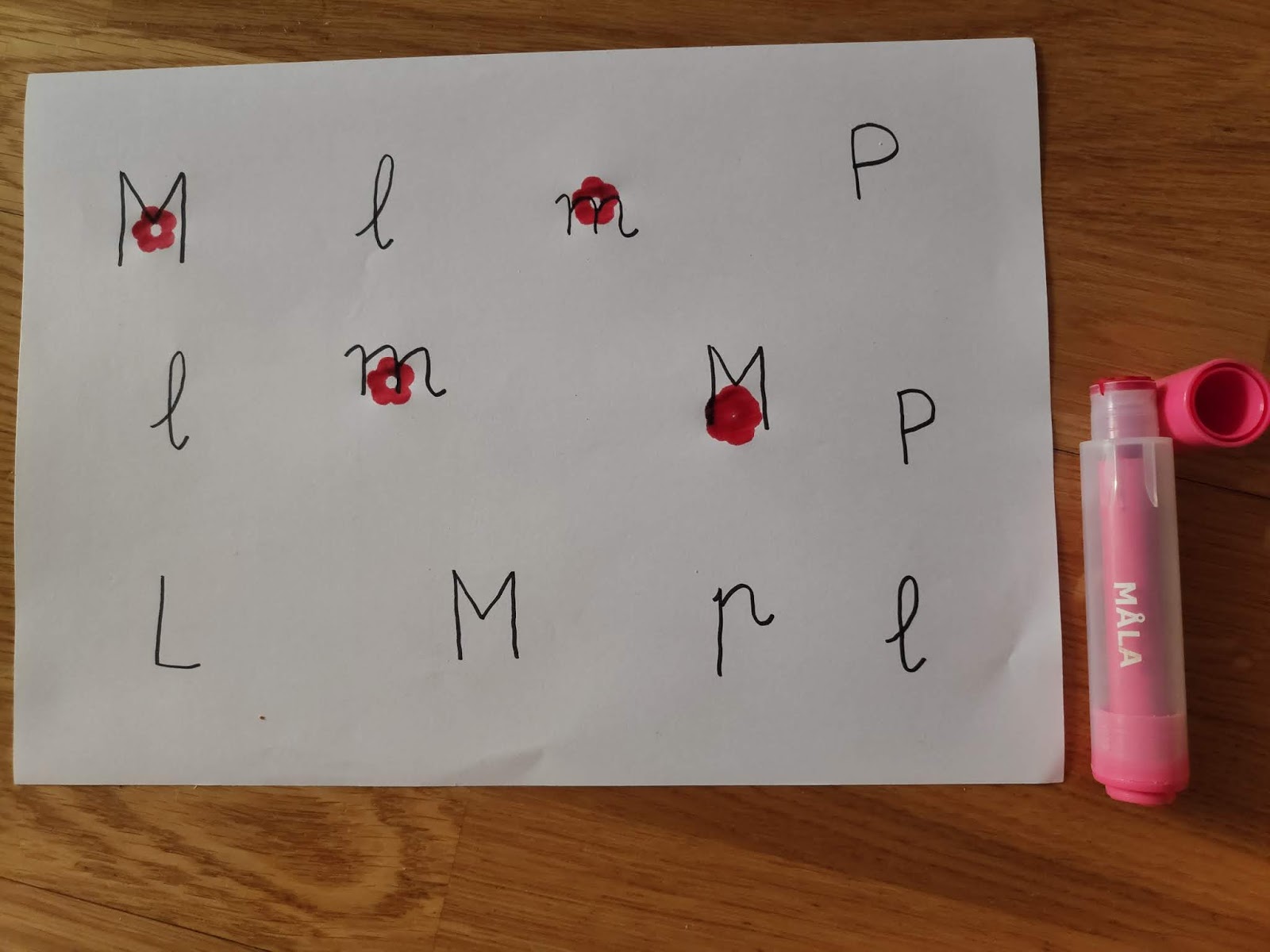 Podemos poner varias letras en un folio y con rotuladores gordos o con formas (en este caso ele nuestro tiene una flor), deben estampar el diseño sobre la letra M. También podéis poner un gomet.